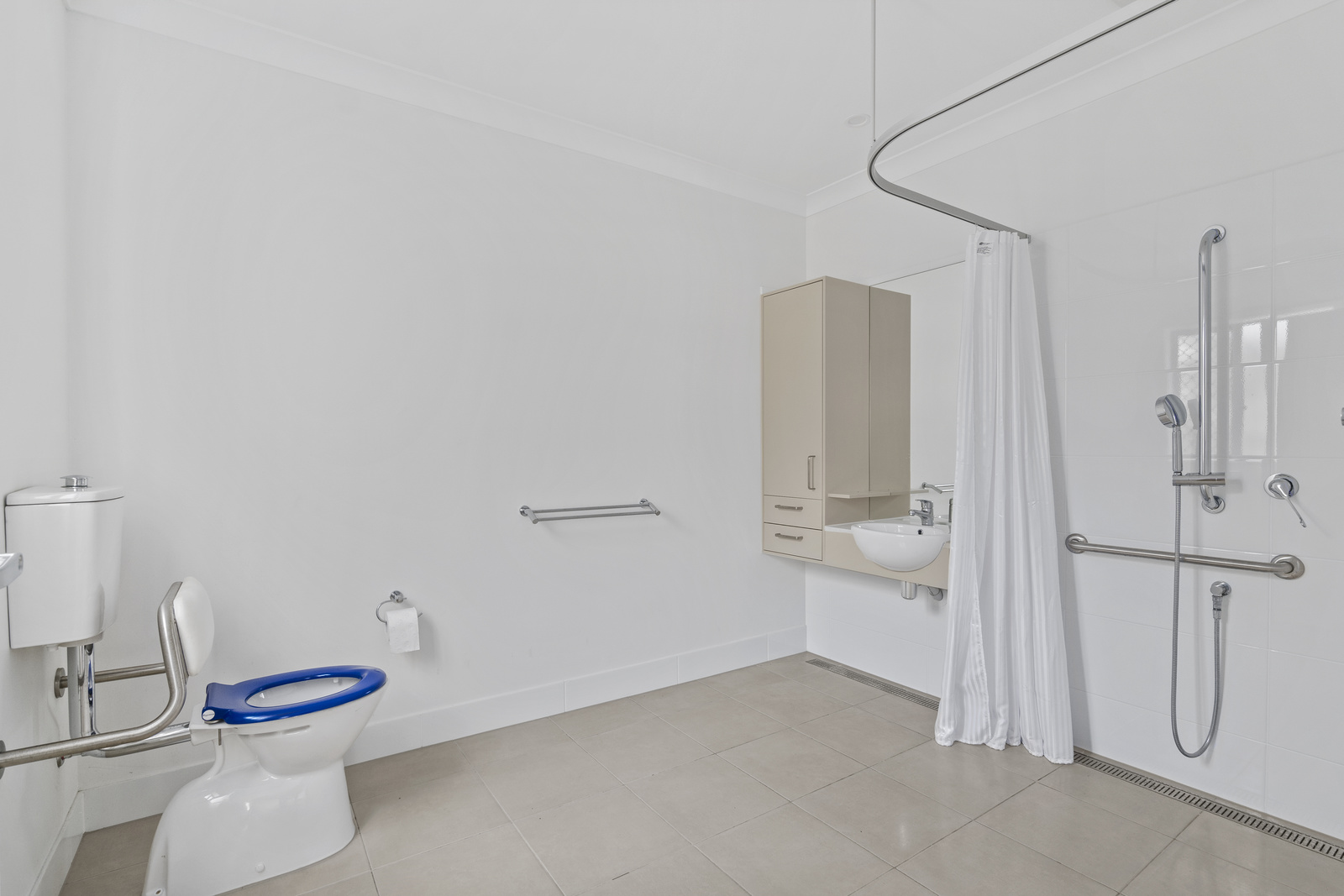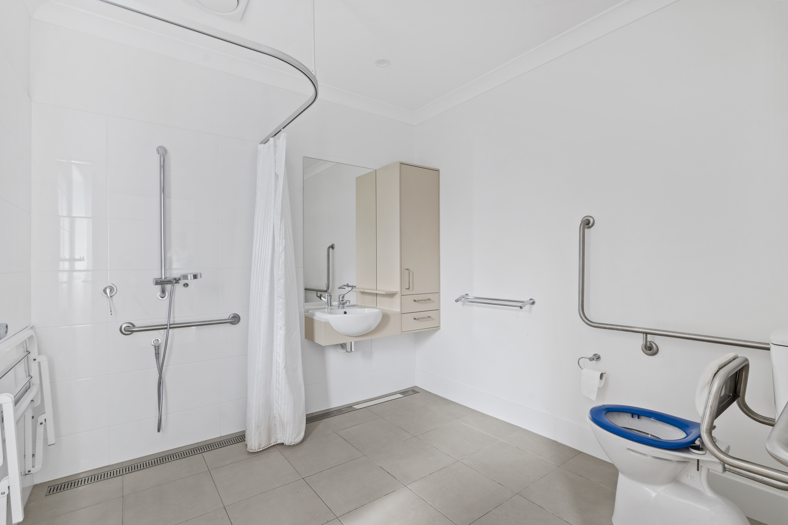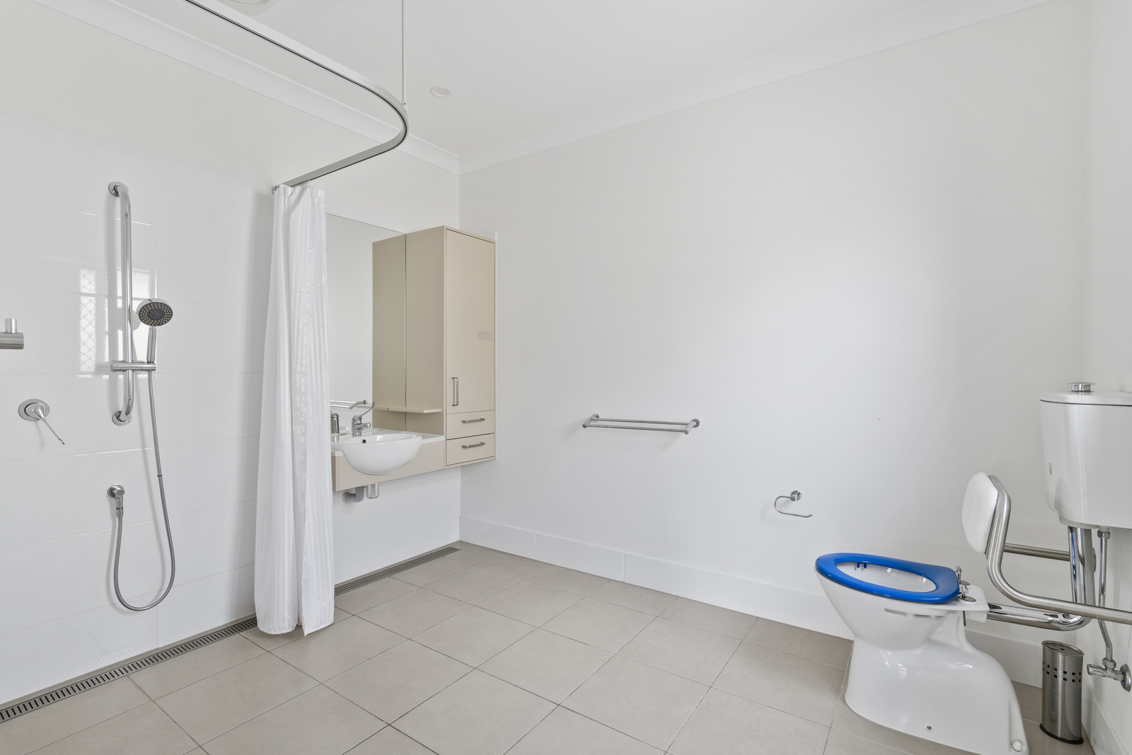 - Accessible bathrooms with open shower design
