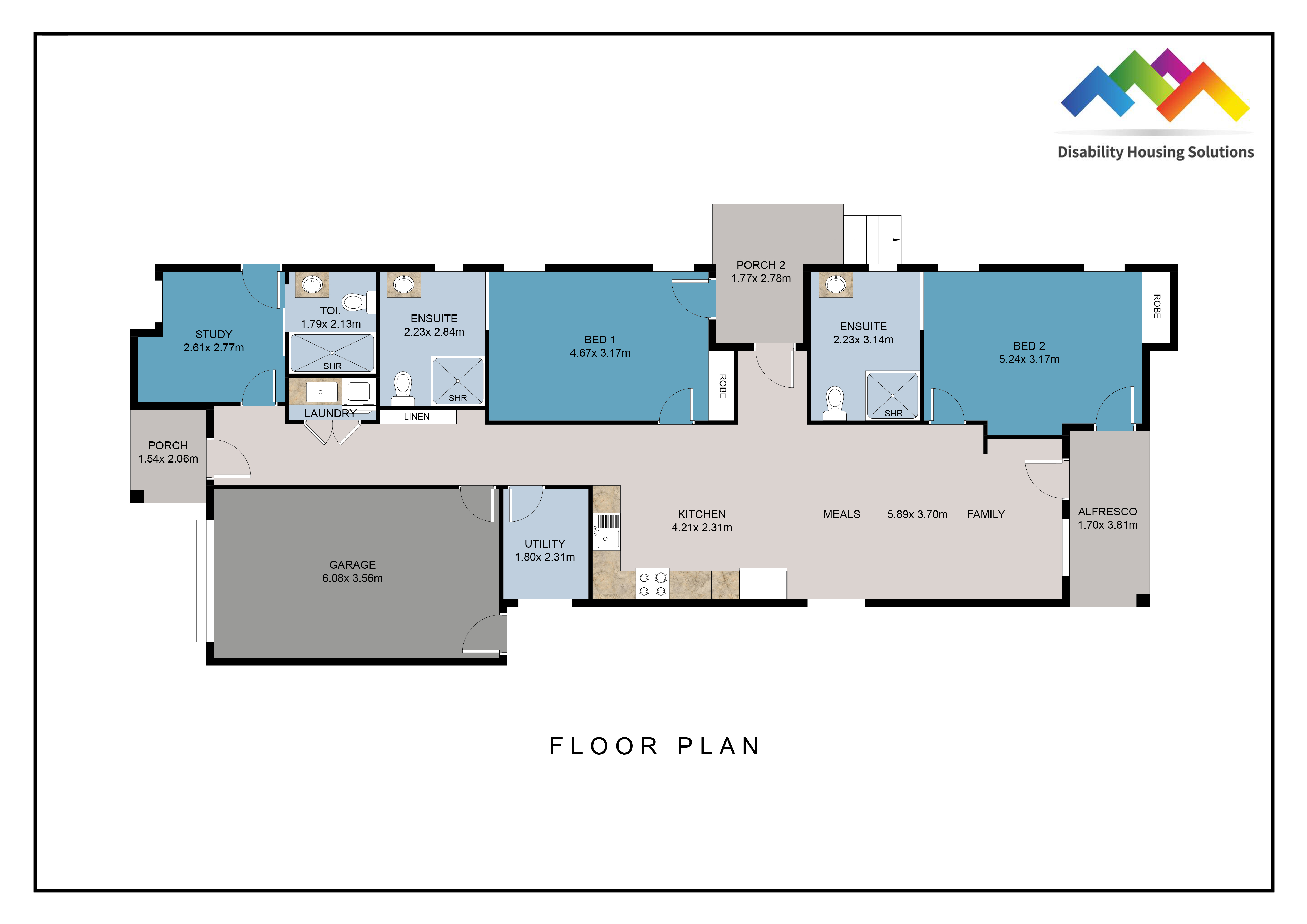 - 2 spacious SDA bedrooms, each with their private accessible ensuite
